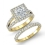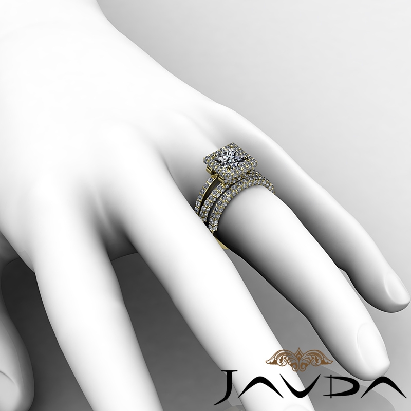 2.78Ct Princess Halo Diamond Semi Moun tEngagement Ring Bridal Set 14k Yellow Gold.