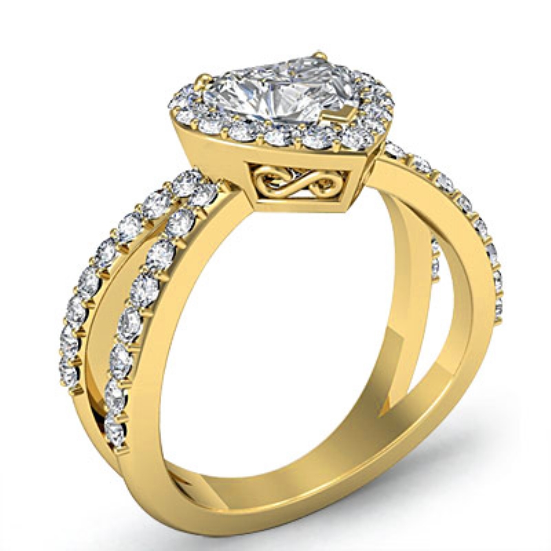 Diamond Engagement SemiMount Ring Split Shank 14k Yellow Gold Halo Setting 0.75Ct.