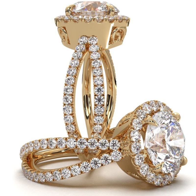 style Engagement Ring, center is Round shape Diamond Report by IGI, G Color & VVS2 clarity, Made in 14k Yellow Gold (1.9 ct. tw.)