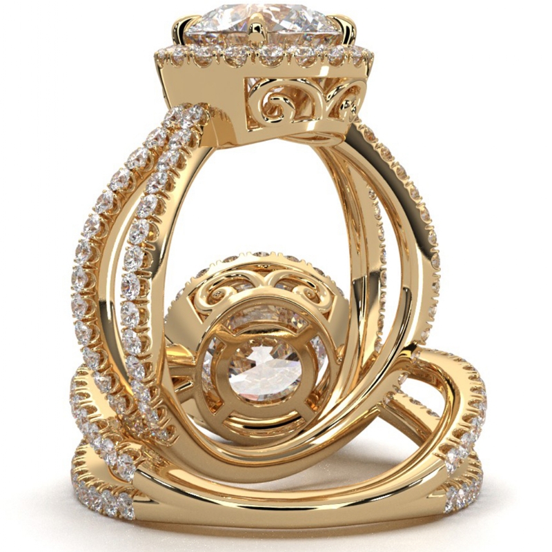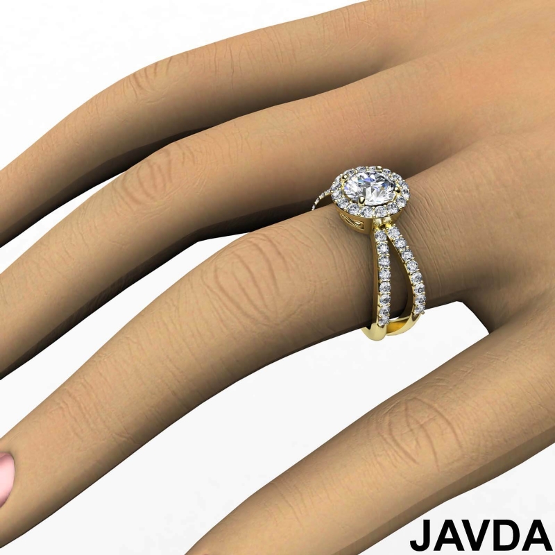 Diamond Engagement SemiMount Ring Split Shank 14k Yellow Gold Halo Setting 0.75Ct.