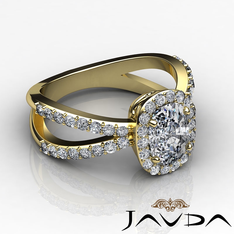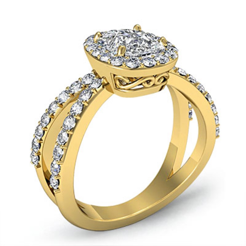 Diamond Engagement SemiMount Ring Split Shank 18k Yellow Gold Halo Setting 0.75Ct.