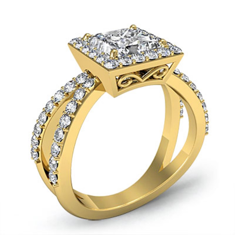 style Engagement Ring, center is Princess shape Diamond Report by GIA, I Color & VVS1 clarity, Made in 18k Yellow Gold (1.75 ct. tw.)