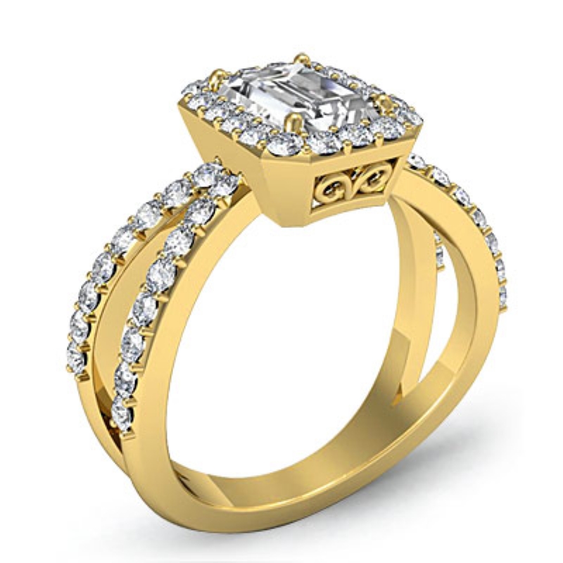 style Engagement Ring, center is Emerald shape Diamond Report by GIA, D Color & VVS1 clarity, Made in 18k Yellow Gold (1.55 ct. tw.)