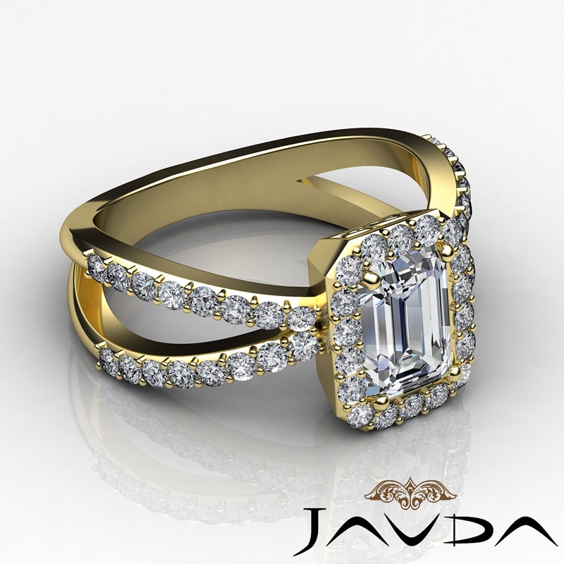 Diamond Engagement SemiMount Ring Split Shank 18k Yellow Gold Halo Setting 0.75Ct.