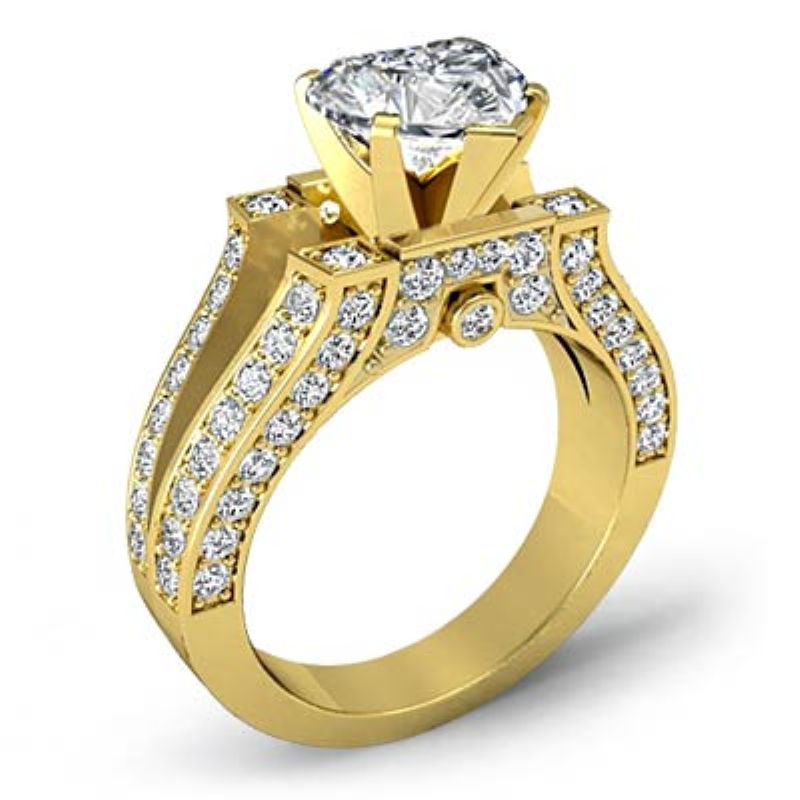 1.2Ct Antique Diamond Engagement Ring Pave Setting 14k Yellow Gold Semi Mount.