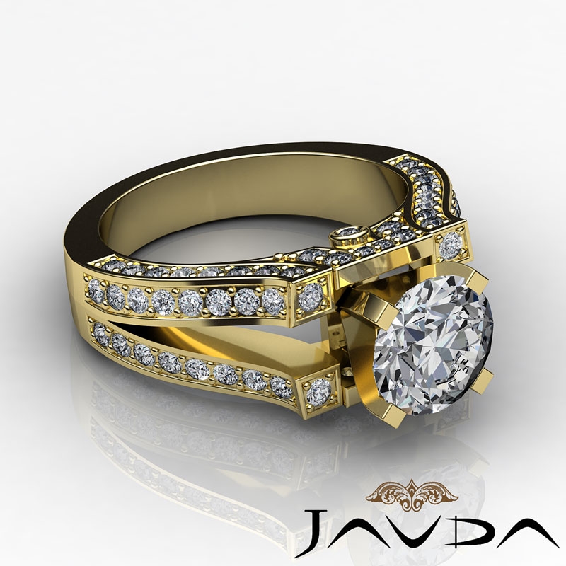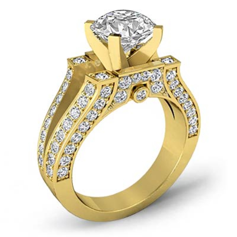 Vintage Split Shank Pave style Engagement Ring, center is Round shape Diamond Report by GIA, I Color & SI1 clarity, Made in 14k Yellow Gold (2.2 ct. tw.)