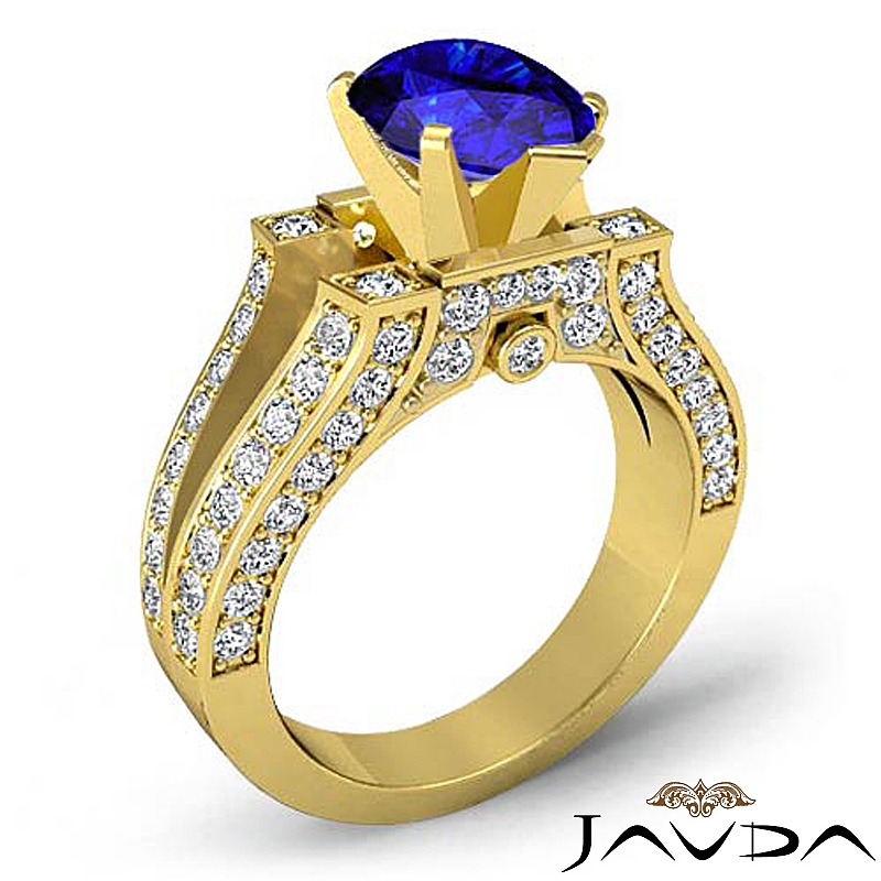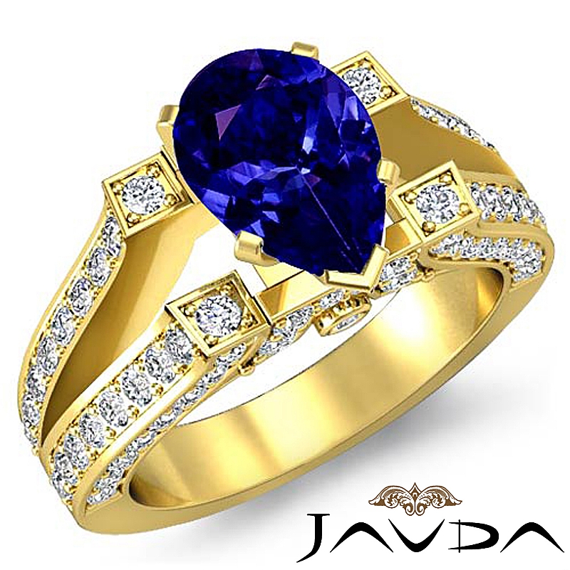 Vintage Split Shank Pave style Engagement Ring, center is Pear shape D Block Tanzanite Report by , Color & clarity, Made in 18k Yellow Gold (2.2 ct. tw.)