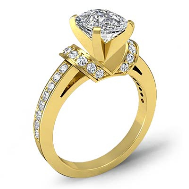 Knot Style Pave Setting style Engagement Ring, center is Cushion shape Diamond Report by GIA, J Color & VS2 clarity, Made in 14k Yellow Gold (1.5 ct. tw.)