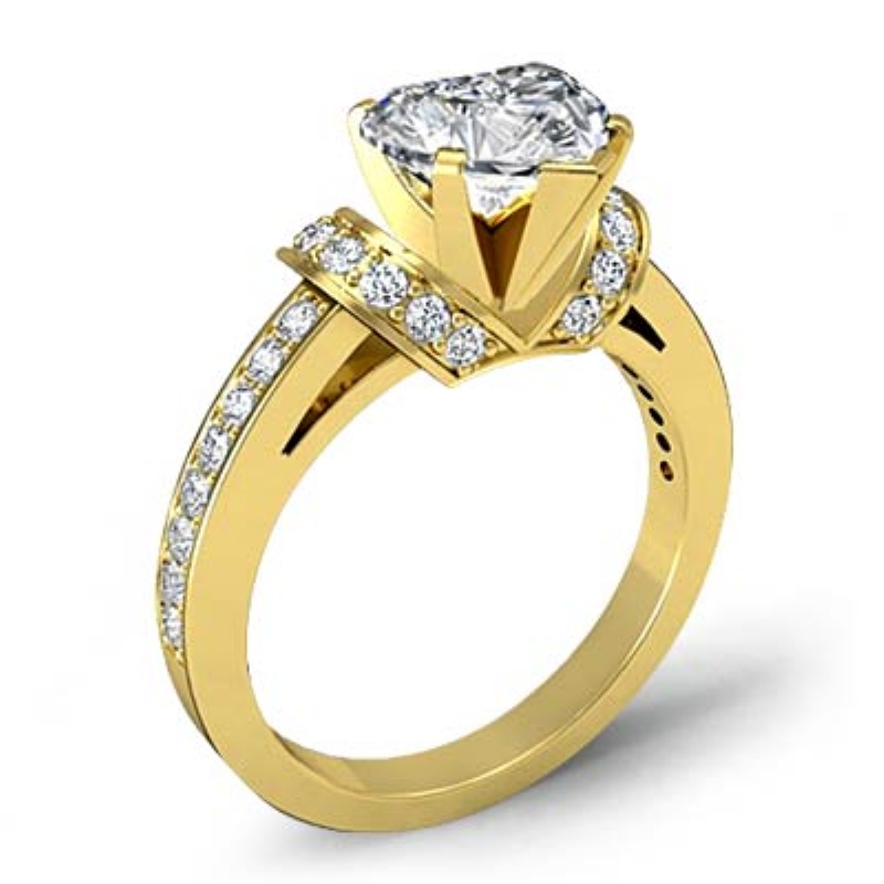 Knot Style Pave Setting style Engagement Ring, center is Heart shape Diamond Report by GIA, J Color & SI2 clarity, Made in 14k Yellow Gold (1.34 ct. tw.)