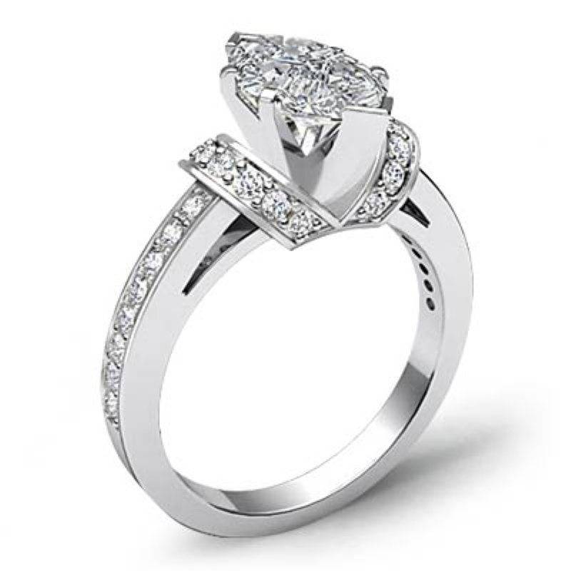 Knot Style Pave Setting style Engagement Ring, center is Marquise shape Diamond Report by GIA, I Color & SI1 clarity, Made in 18k White Gold (1.45 ct. tw.)