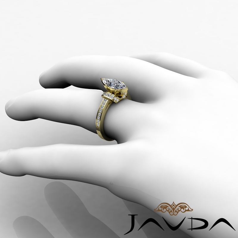 Knot Style Pave Setting style Engagement Ring, center is Marquise shape Diamond Report by GIA, I Color & SI1 clarity, Made in 18k Yellow Gold (1.45 ct. tw.)
