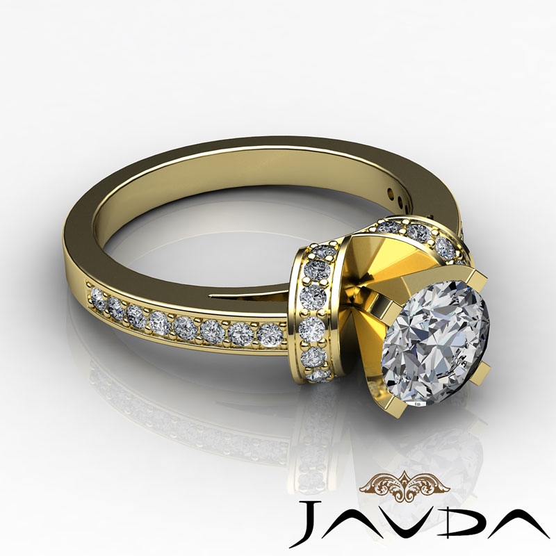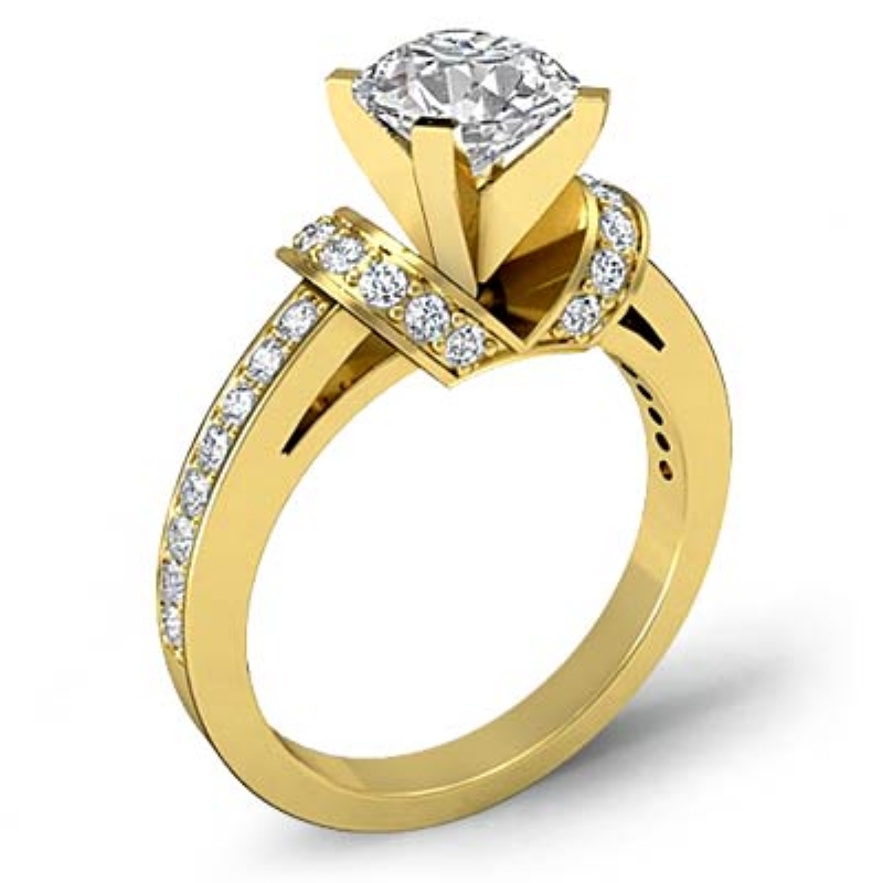 Knot Style Pave Setting style Engagement Ring, center is Round shape Diamond Report by GIA, I Color & SI1 clarity, Made in 18k Yellow Gold (1.5 ct. tw.)