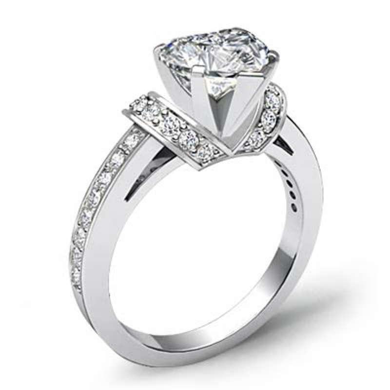 Knot Style Pave Setting style Engagement Ring, center is Heart shape Diamond Report by GIA, J Color & SI2 clarity, Made in Platinum 950 (1.34 ct. tw.)