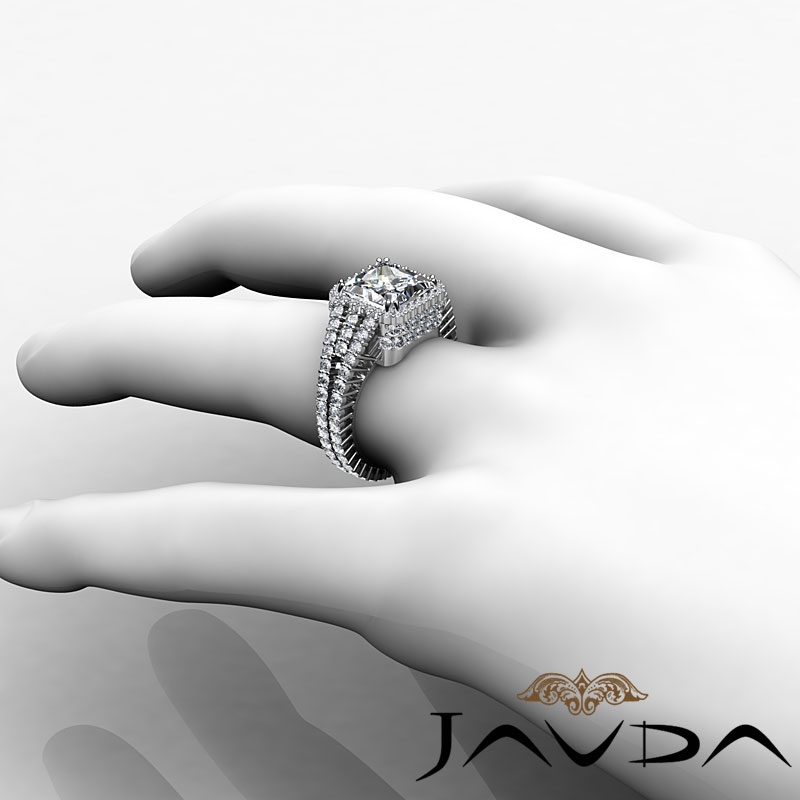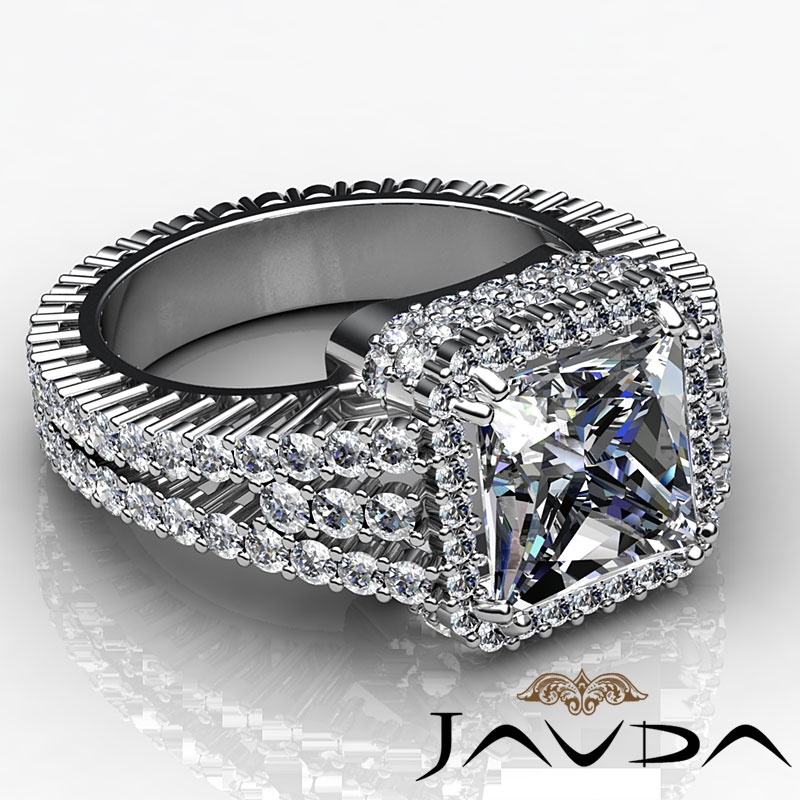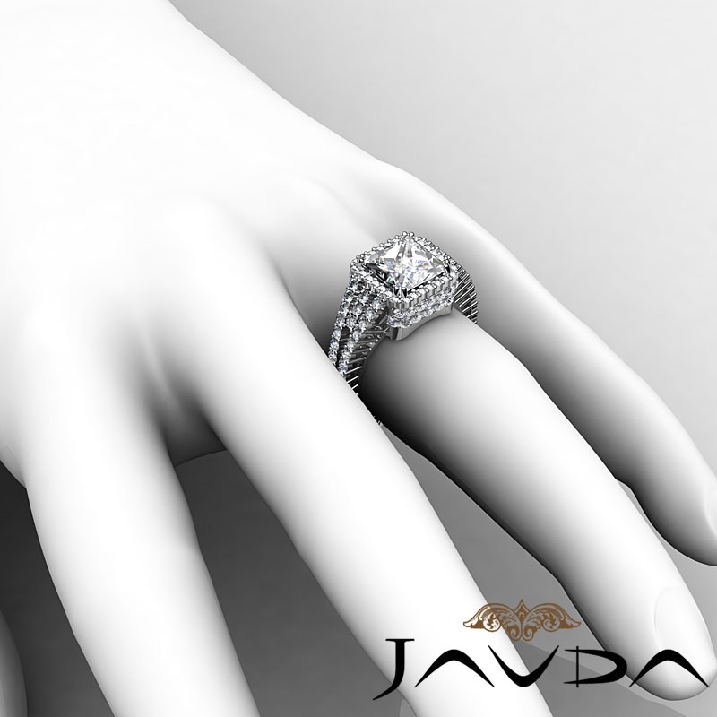 2.5Ct Halo Setting Diamond Engagement Princess Semi Mount Ring 18k White Gold.