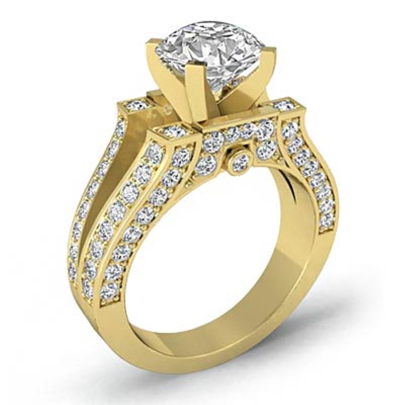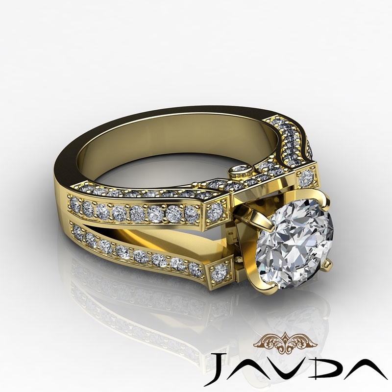 Split Shank Pave Side Stone style Engagement Ring, center is Round shape Diamond Report by GIA, H Color & SI1 clarity, Made in 18k Yellow Gold (1.51 ct. tw.)