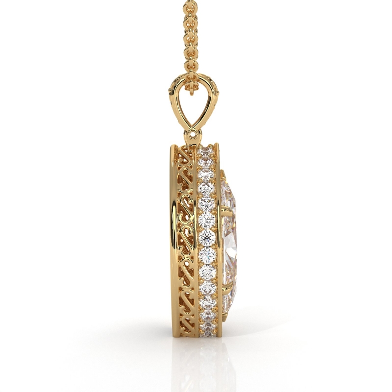 Pave Set Halo Round Diamond Marquise Solitaire Pendant in 18k Yellow Gold 0.63Ct.