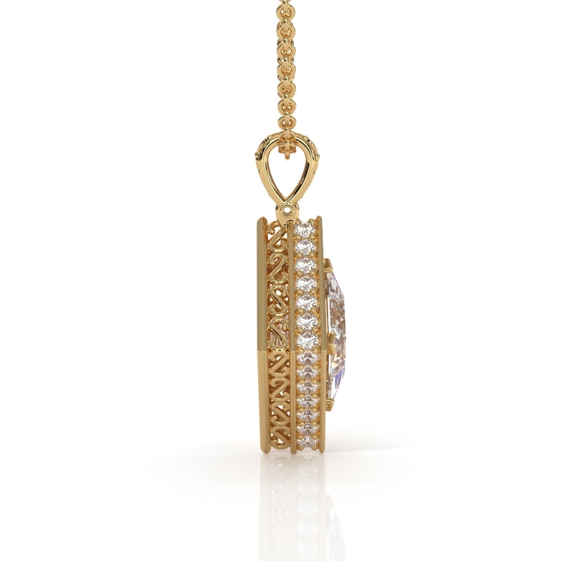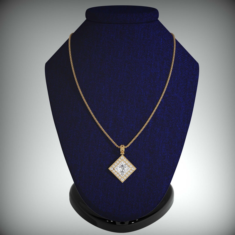 style Engagement Pendant, center is Princess shape Diamond Report by GIA, E Color & VS2 clarity, Made in 18k Yellow Gold (1.2 ct. tw.)