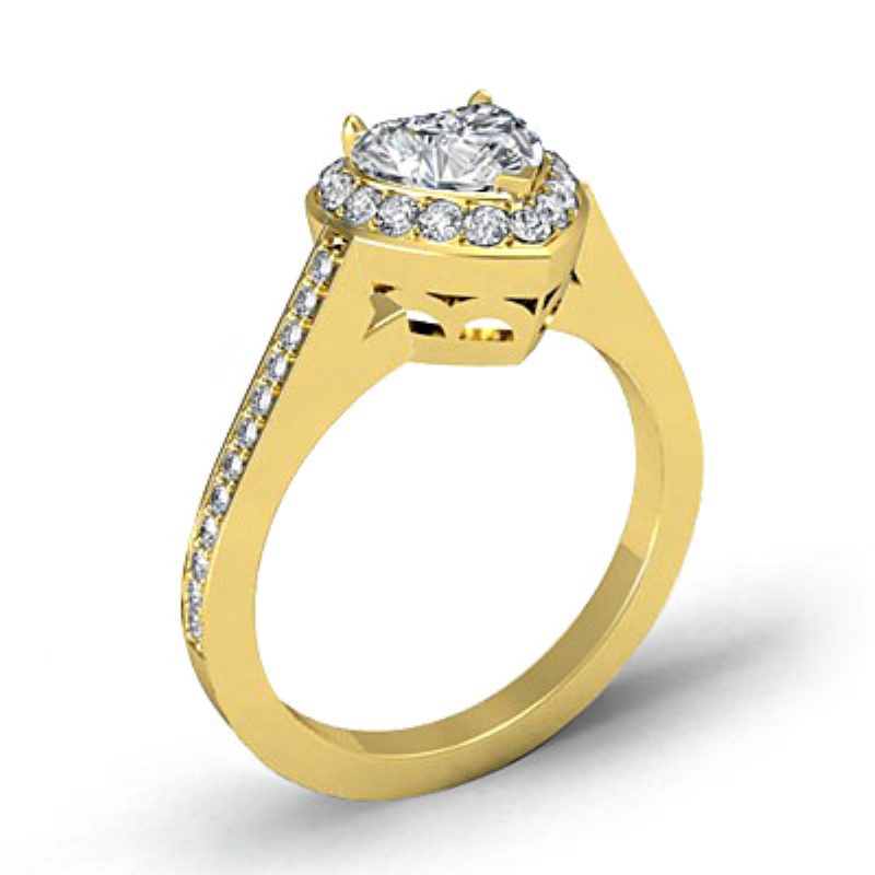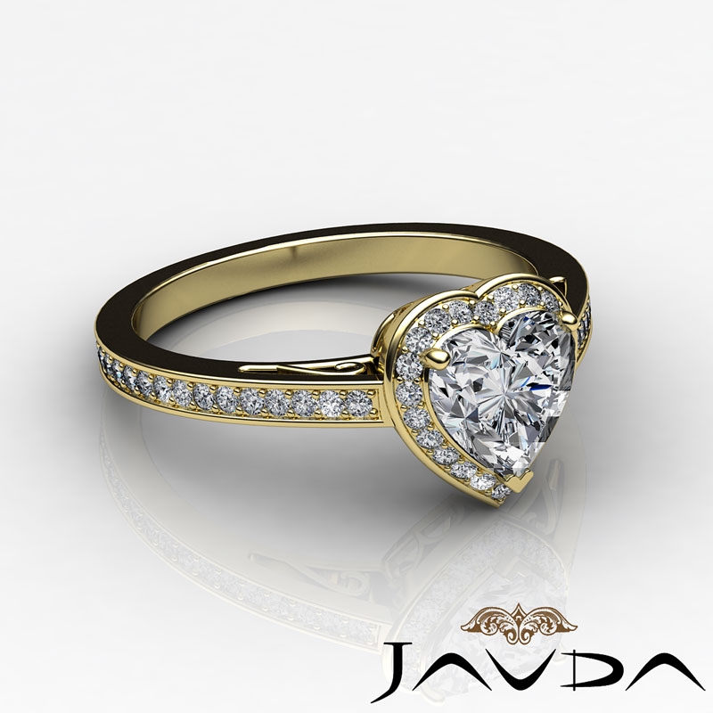 Halo Pave Filigree Sidestone style Engagement Ring, center is Heart shape Diamond Report by GIA, J Color & SI2 clarity, Made in 14k Yellow Gold (1.34 ct. tw.)