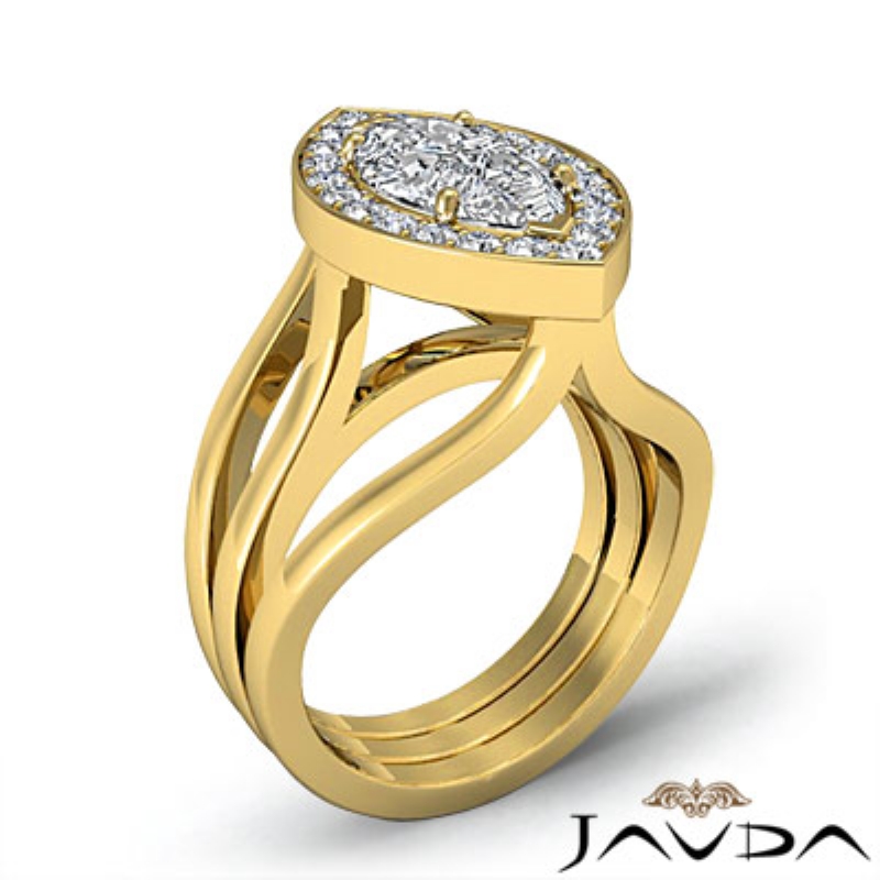 Diamond Engagement Ring Round Semi Mount 18k Yellow Gold Halo 0.4Ct.