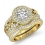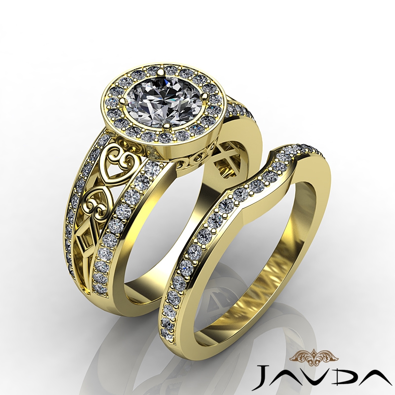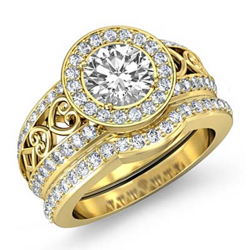 Filigree Shank Halo Bridal style Engagement Ring, center is Round shape Diamond Report by GIA, I Color & SI1 clarity, Made in 14k Yellow Gold (2.52 ct. tw.)