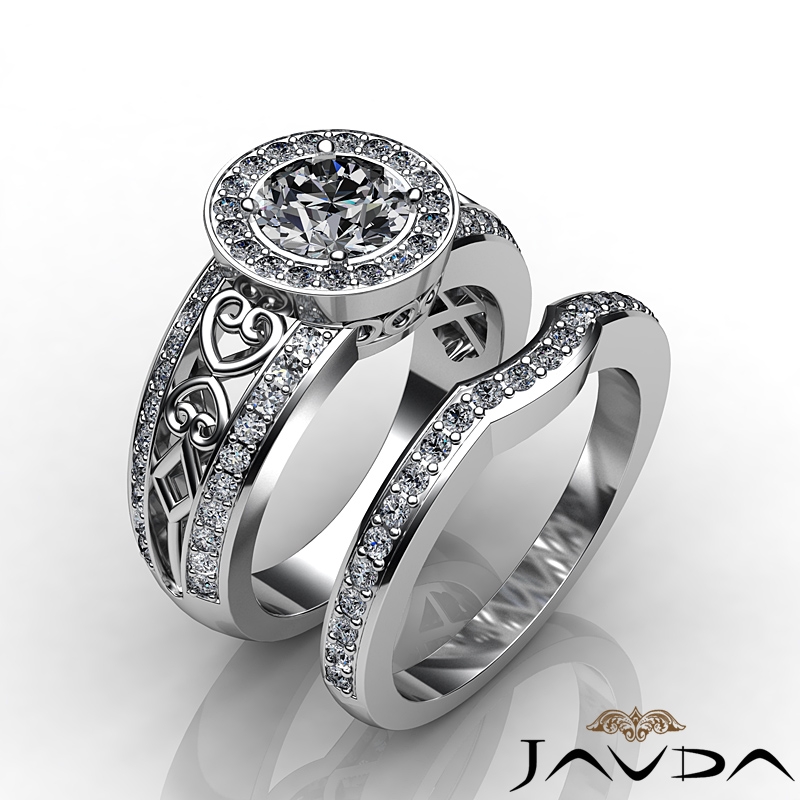 Vintage Diamond Engagement Ring Round Bridal Set 18k White Gold SemiMount 1.52Ct.