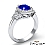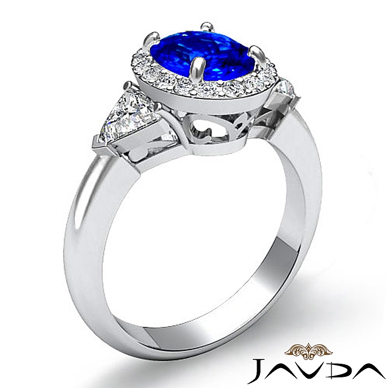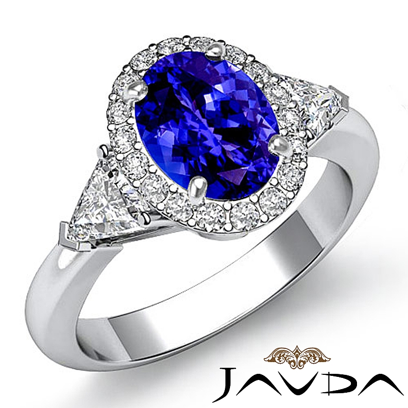 Three Stone Trillion Halo style Engagement Ring, center is Oval shape D Block Tanzanite Report by , Color & clarity, Made in 18k White Gold (2 ct. tw.)