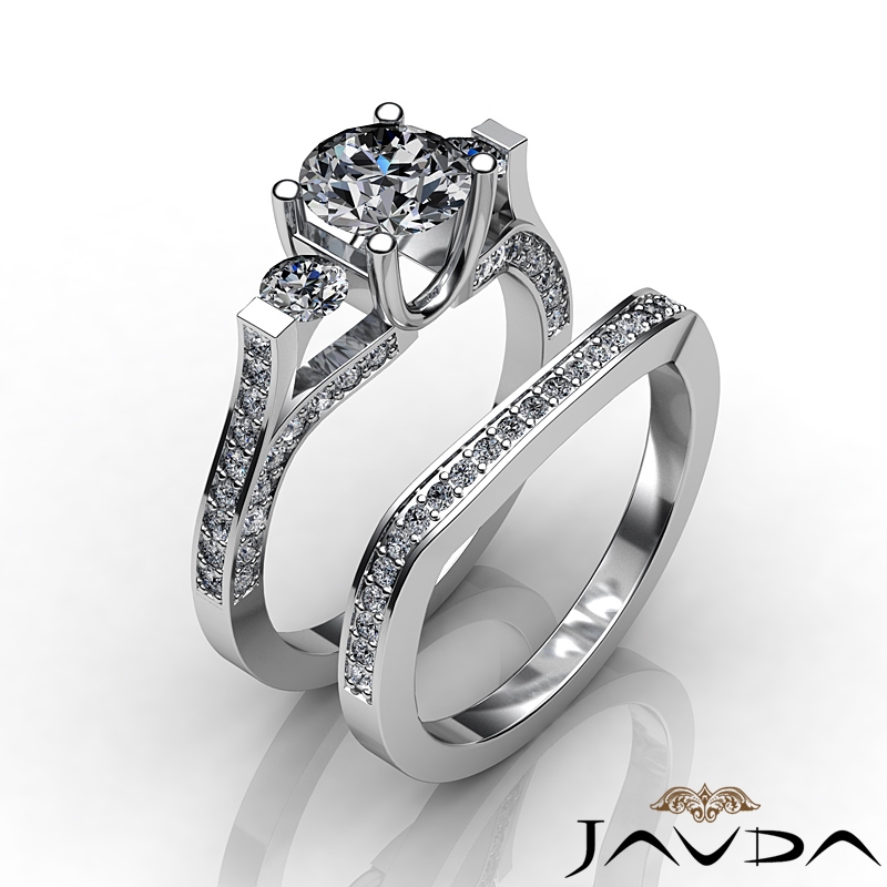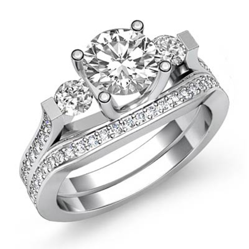 1.5Ct Round Diamond 3 Stone Engagement Ring Bridal Set 18k White Gold Semi Mount - javda.com
