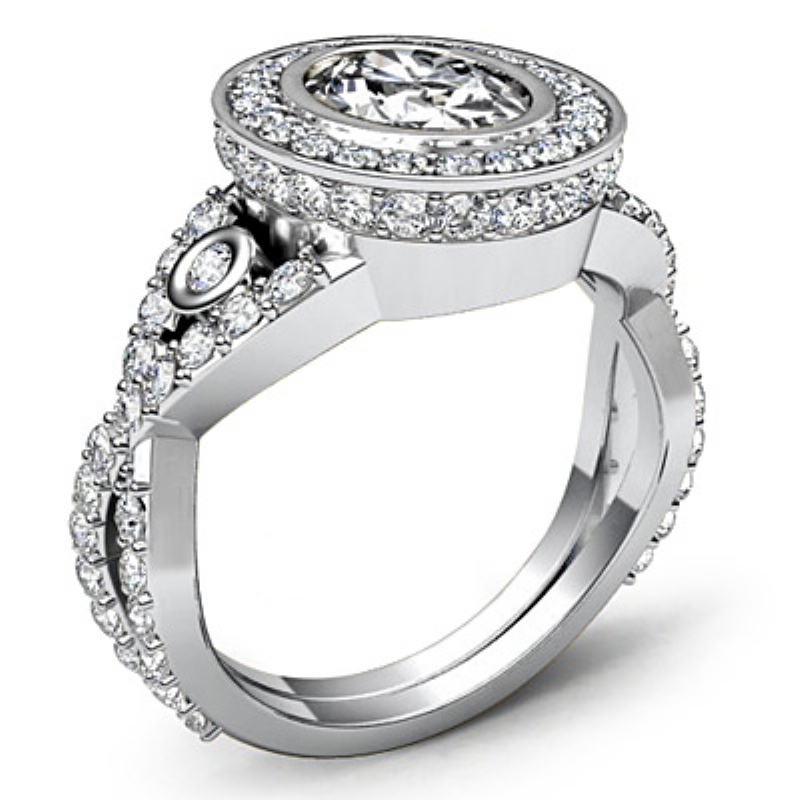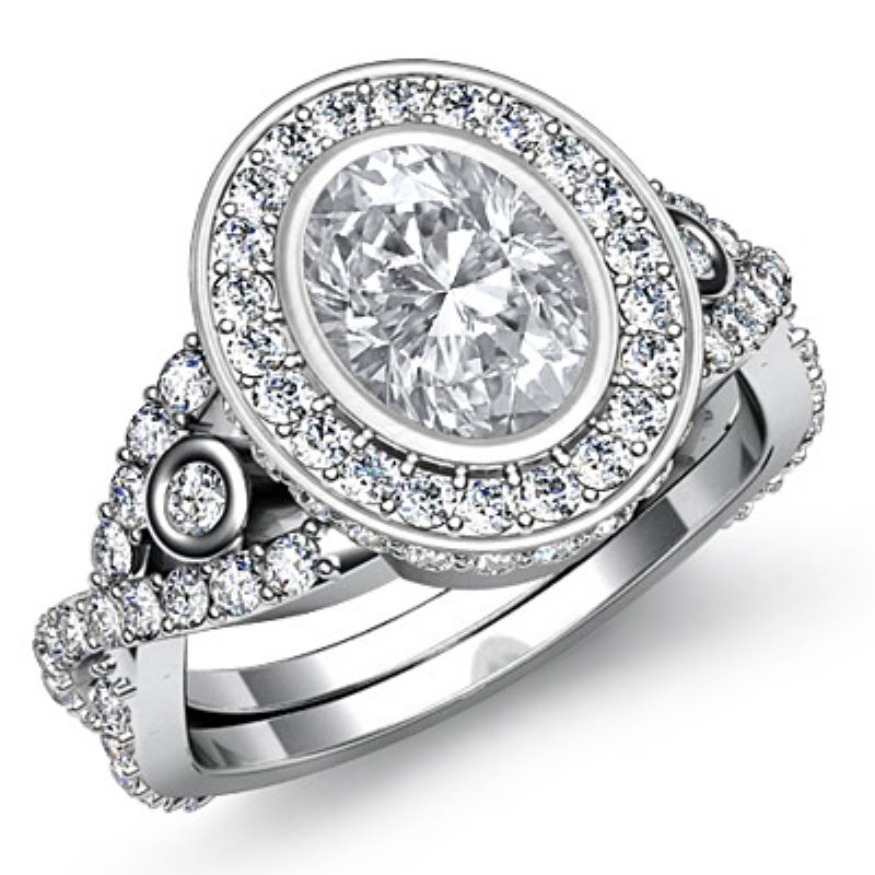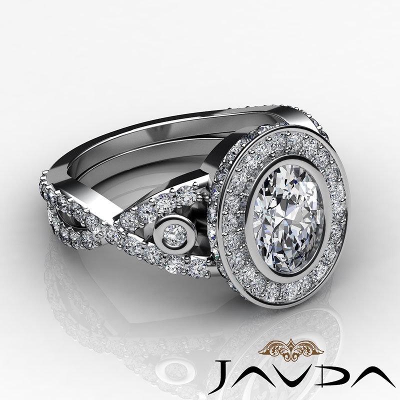 1.65Ct Diamond Engagement Ring Halo Platinum 950 Oval Semi Mount.