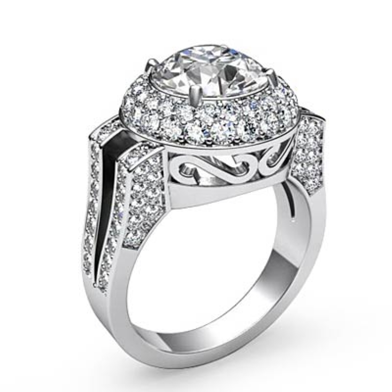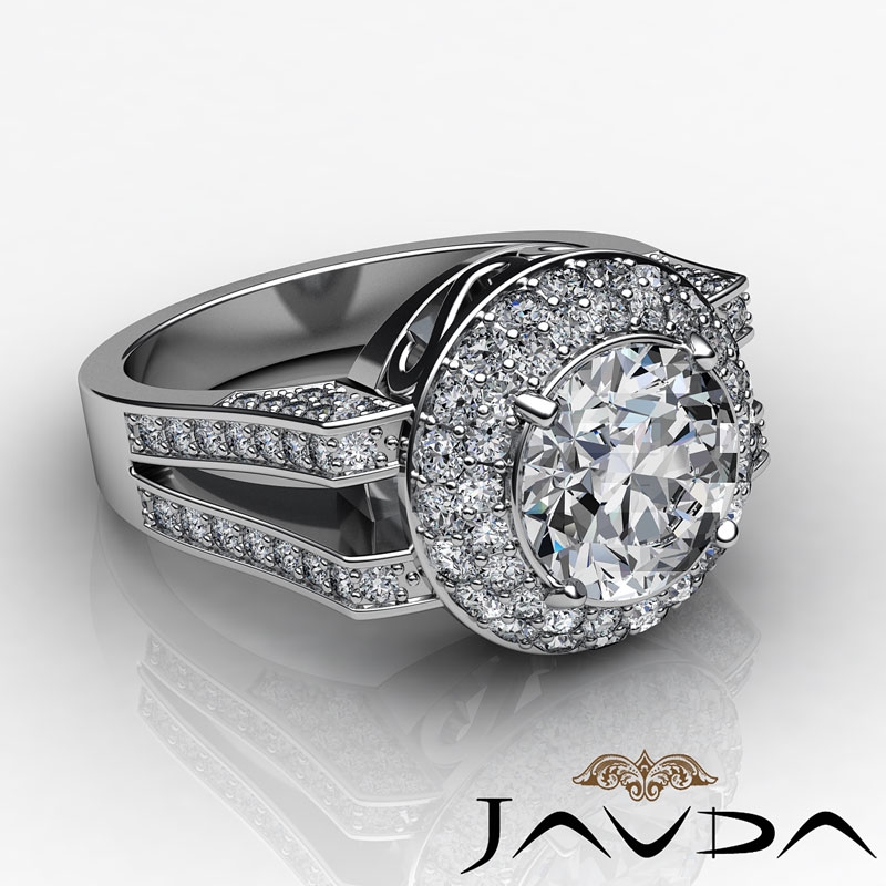 Diamond Engagement Round Ring Platinum 950 Halo Semi Mount 1.1Ct.