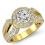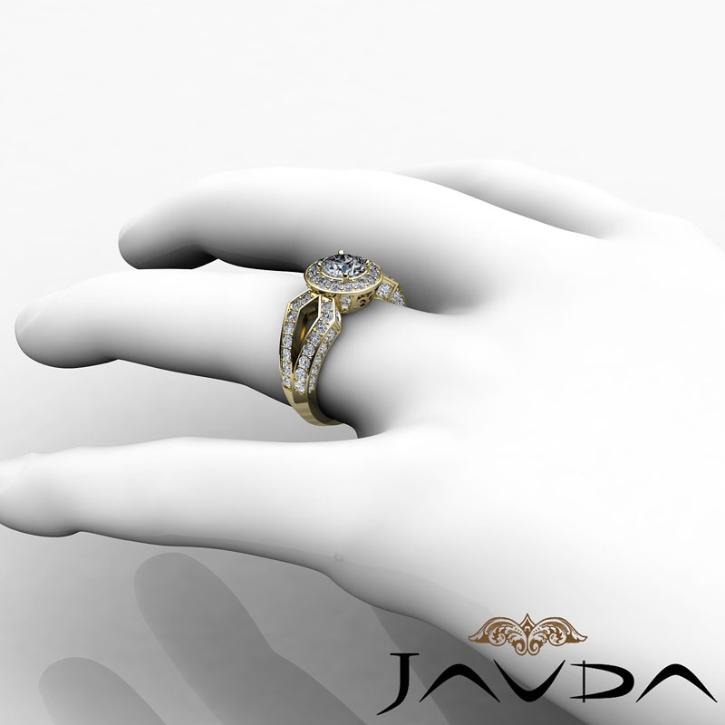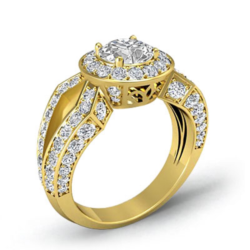 Split Shank Halo Pave Set style Engagement Ring, center is Round shape Diamond Report by IGI, F Color & VS1 clarity, Made in 18k Yellow Gold (2.78 ct. tw.)