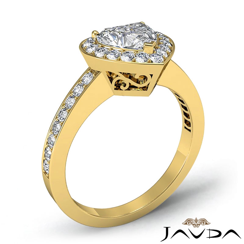 Vintage Filigree Halo Pave style Engagement Ring, center is Heart shape Diamond Report by GIA, J Color & SI2 clarity, Made in 18k Yellow Gold (1.19 ct. tw.)