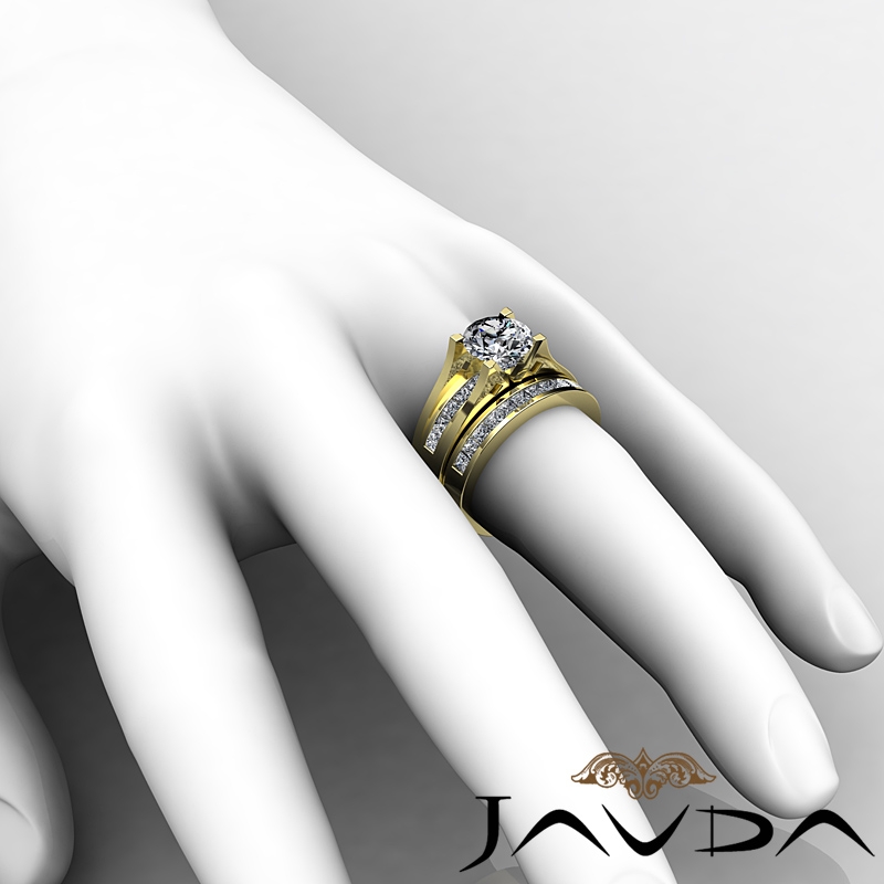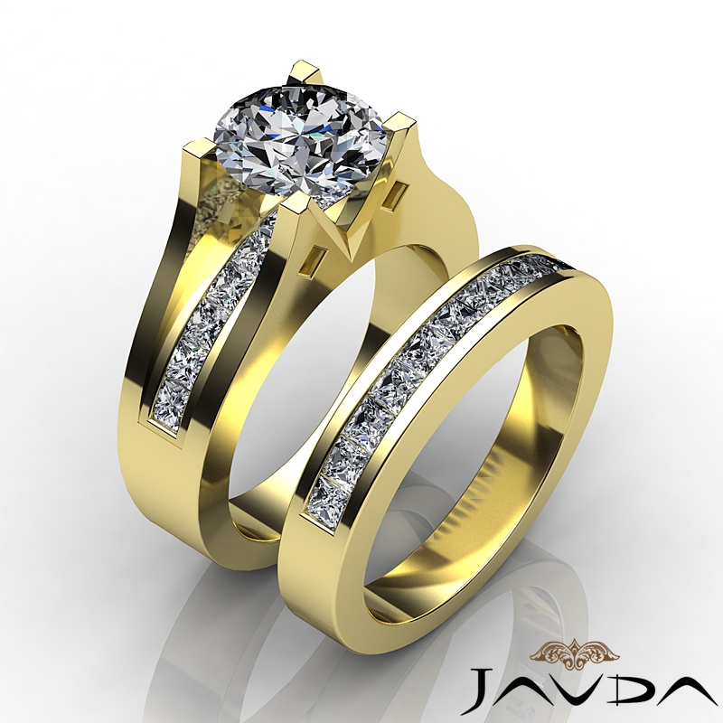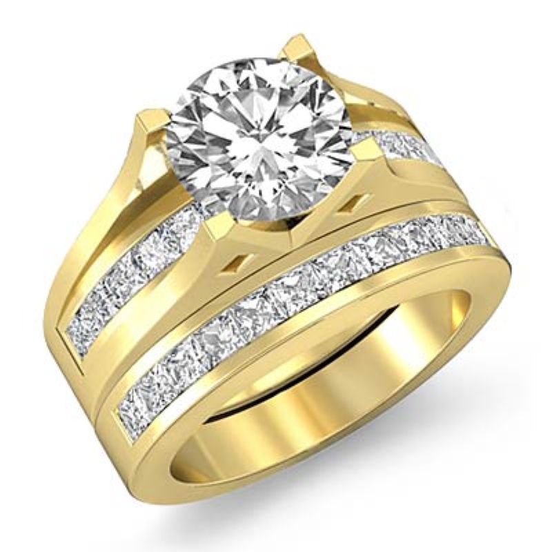 2.1Ct Diamond Princess Channel Engagement Ring Round Bridal Set 14k Yellow Gold.