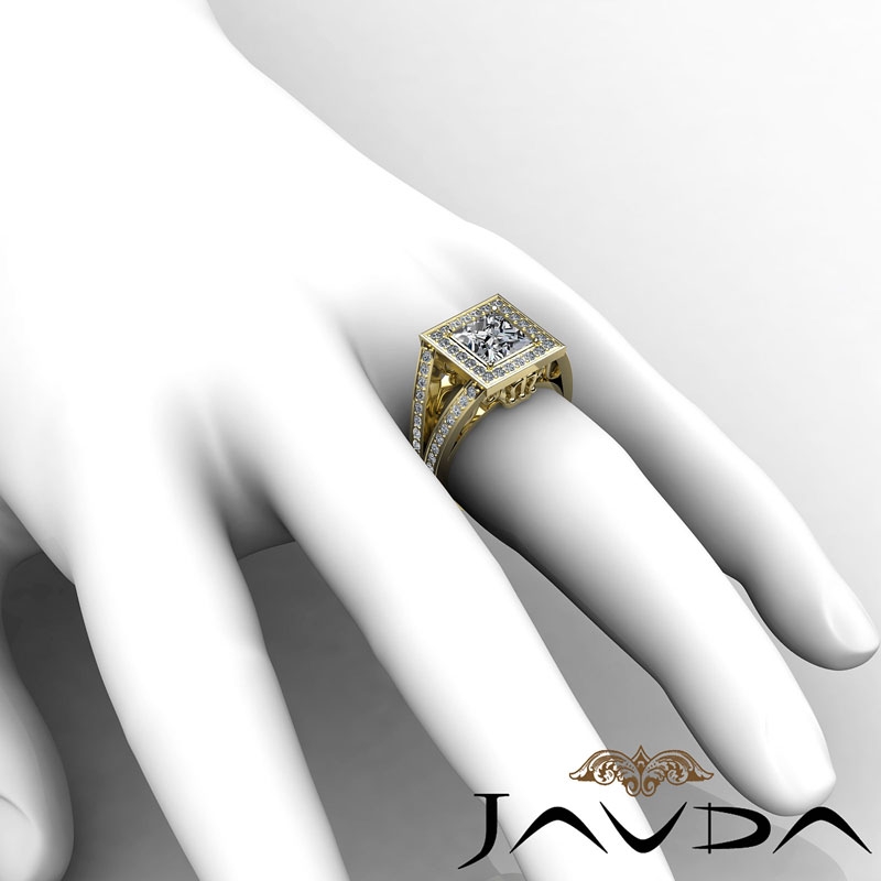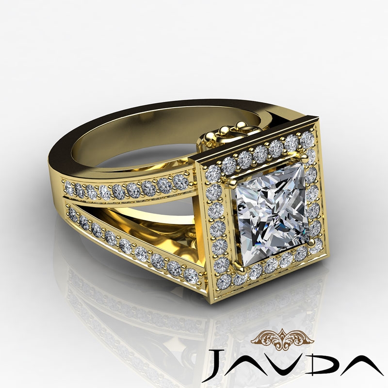 1Ct Diamond Engagement Halo Setting Ring Princess Semi Mount 18k Yellow Gold.