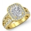0.75Ct Diamond Engagement Ring Halo 14k Yellow Gold Round Semi Mount.