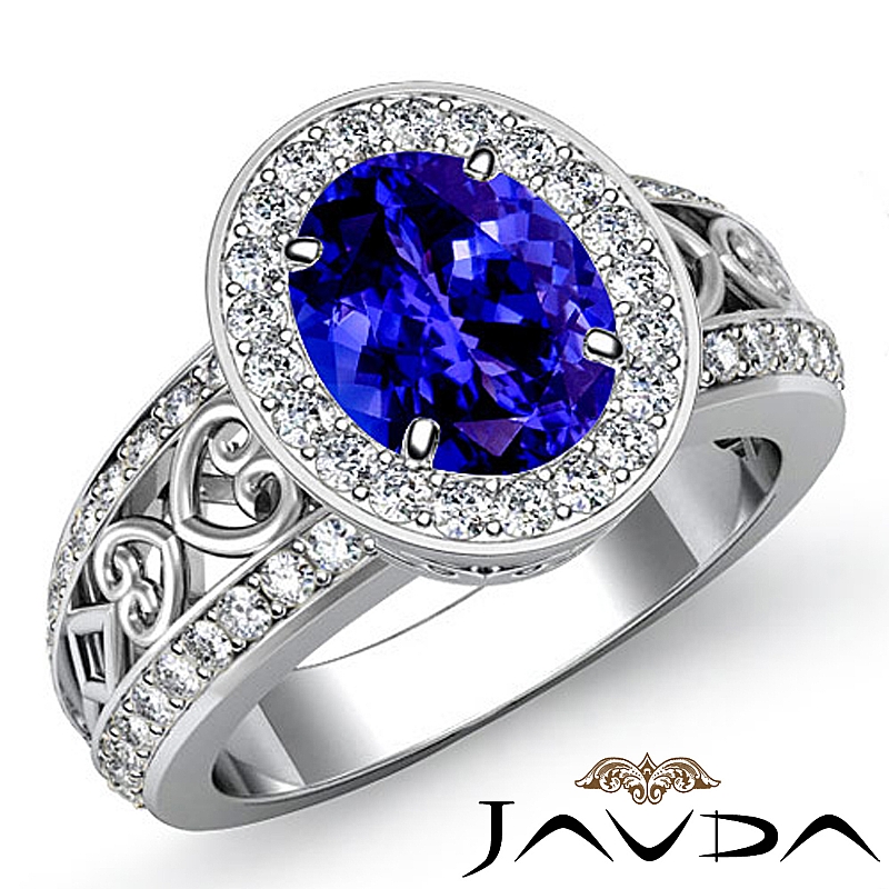 style Engagement Ring, center is Oval shape D Block Tanzanite Report by , Color & clarity, Made in 18k White Gold (1.75 ct. tw.)