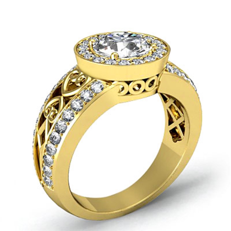style Engagement Ring, center is Round shape Diamond Report by GIA, F Color & VS2 clarity, Made in 18k Yellow Gold (1.25 ct. tw.)
