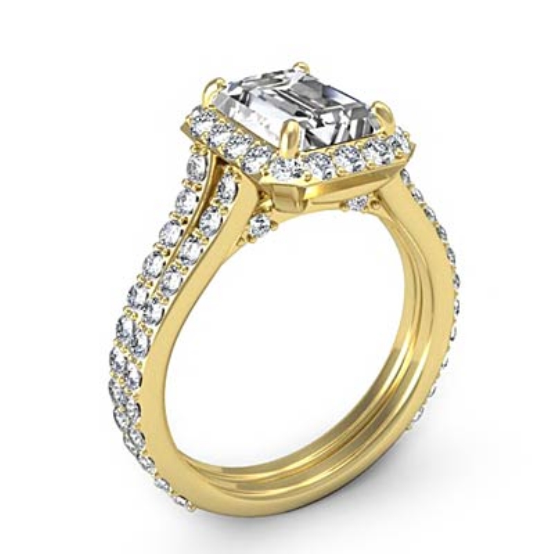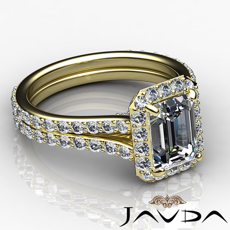 1.2Ct Diamond Emerald Semi Mount Engagement Ring Halo Pave Setting 18k Yellow Gold.