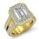 Pave Set Circa Halo Bridge style Engagement Ring, center is Emerald shape Diamond Report by GIA, D Color & IF clarity, Made in 14k Yellow Gold (3.02 ct. tw.)