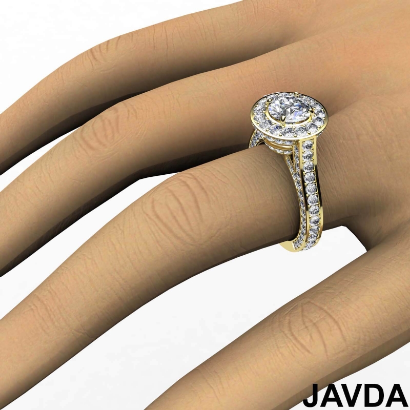 2.1Ct Diamond Engagement Round Semi Mount Halo Pave Setting Ring 14k Yellow Gold.