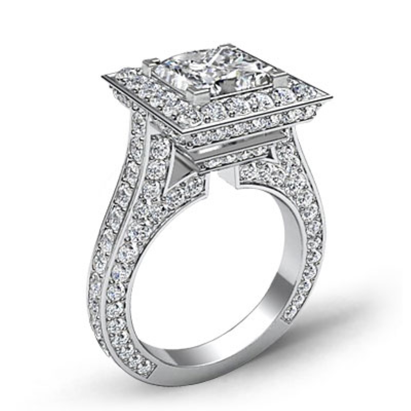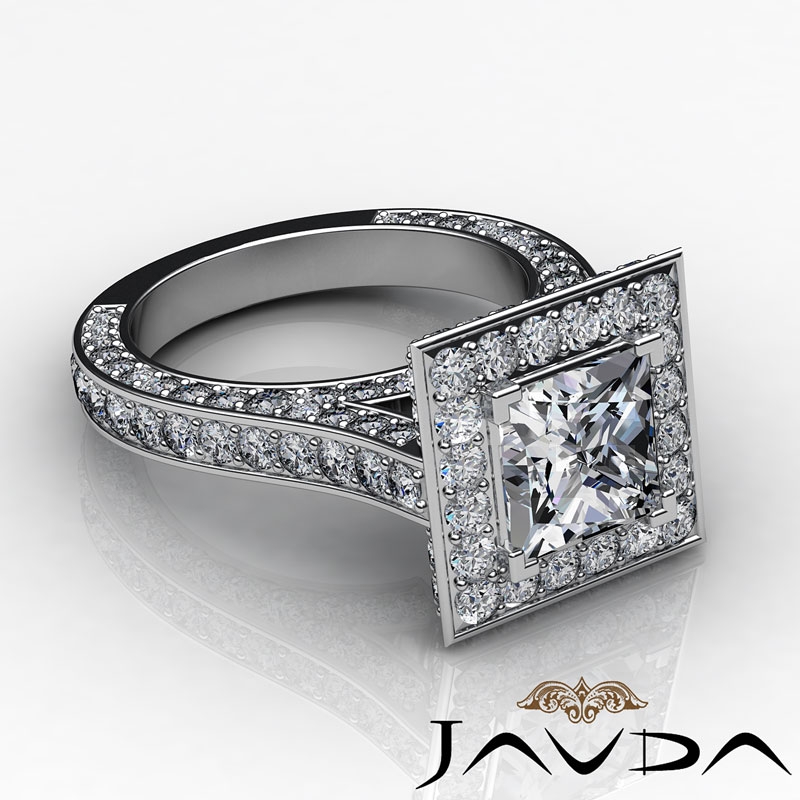 Halo Micro Pave Bridge Accent style Engagement Ring, center is Princess shape Diamond Report by IGI, D Color & VS1 clarity, Made in Platinum 950 (3.12 ct. tw.)