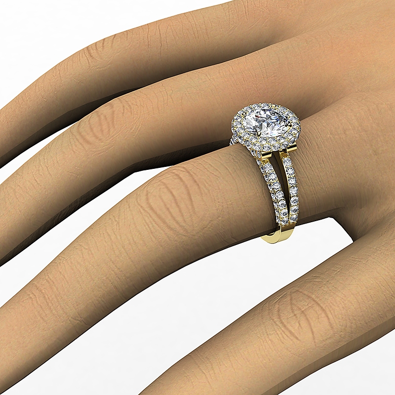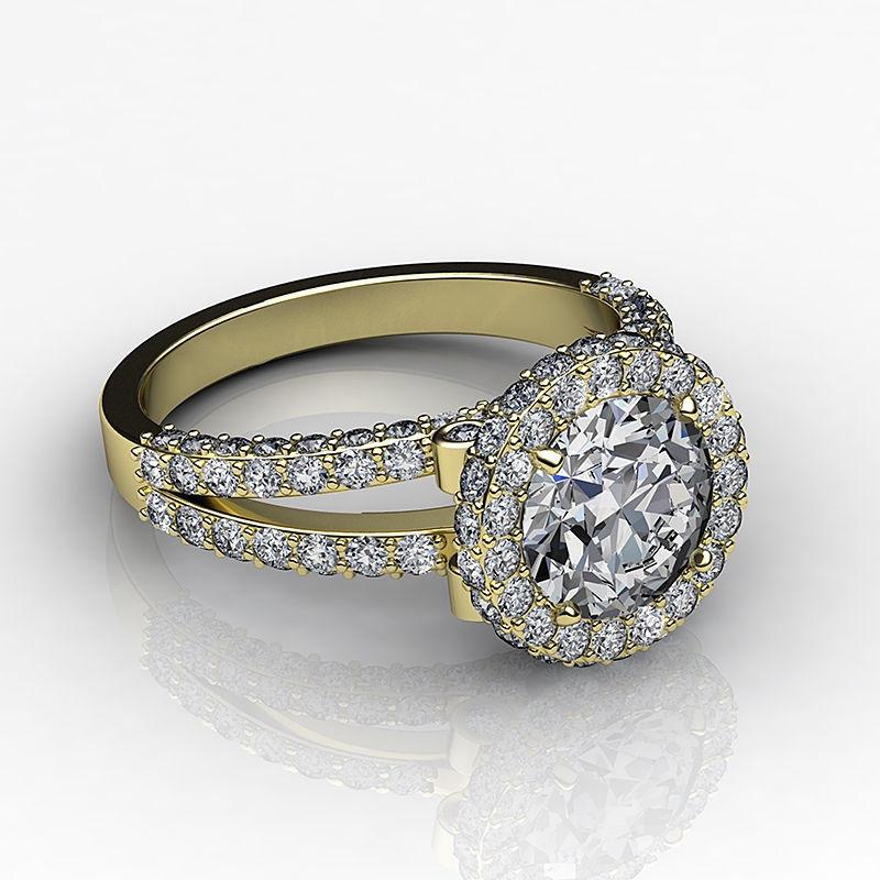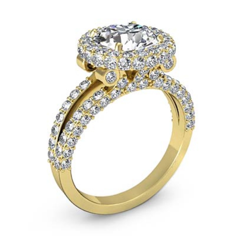 Diamond Engagement Ring Round Semi Mount 18k Yellow Gold Halo 1.4Ct.