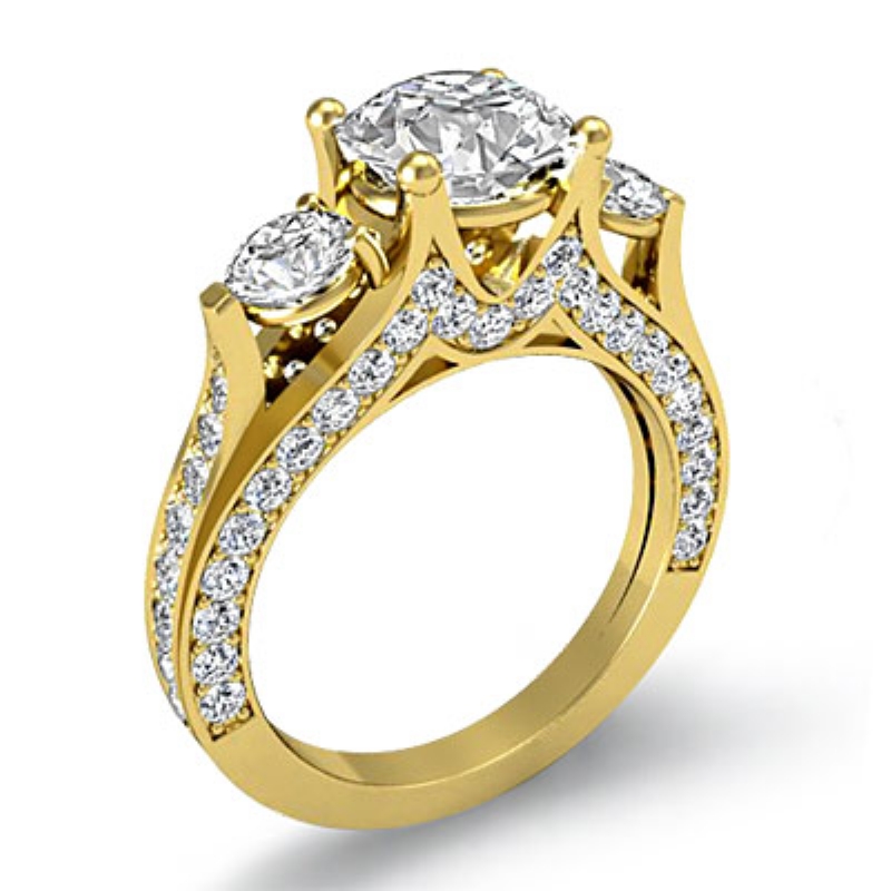 Three 3 Stone Round Diamond Engagement Ring Setting 18k Yellow Gold Semi Mount 1.3Ct.