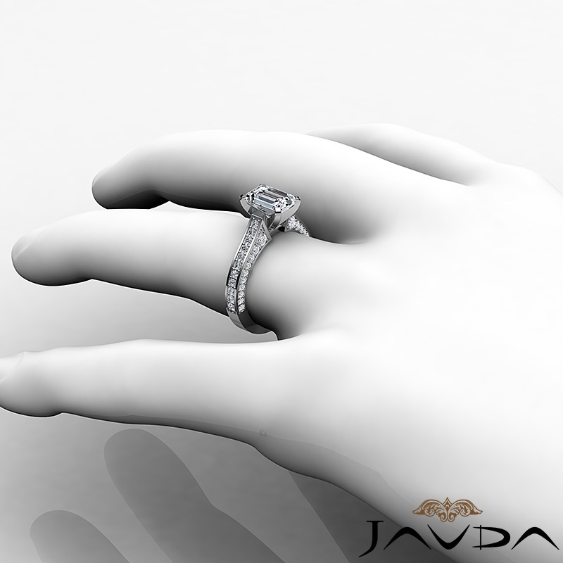 style Engagement Ring, center is Emerald shape Diamond Report by IGI, D Color & VS1 clarity, Made in Platinum 950 (2 ct. tw.)
