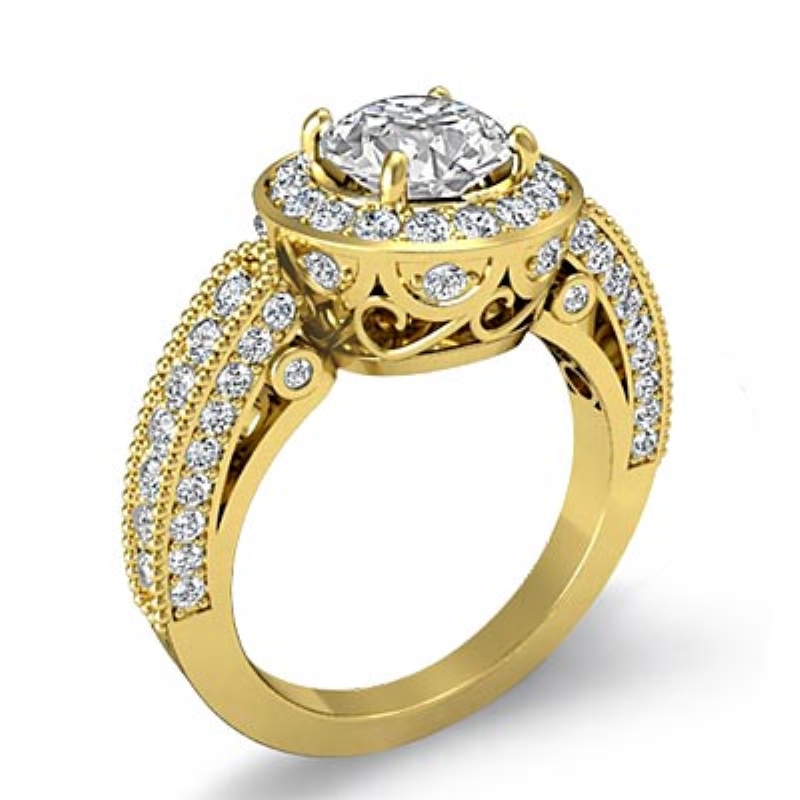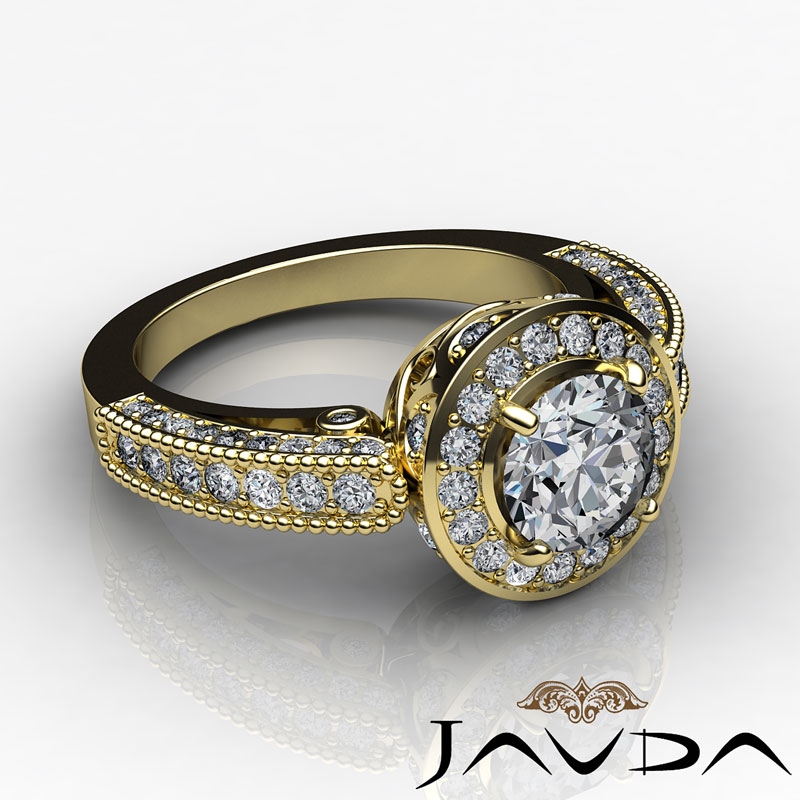 Milgrain Edge Halo Filigree style Engagement Ring, center is Round shape Diamond Report by GIA, I Color & SI1 clarity, Made in 14k Yellow Gold (1.8 ct. tw.)