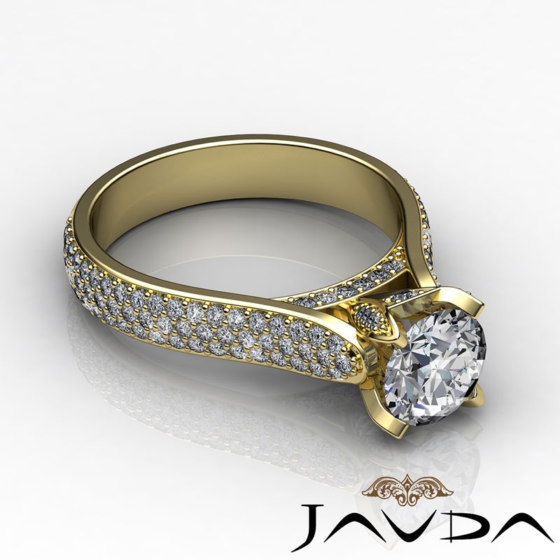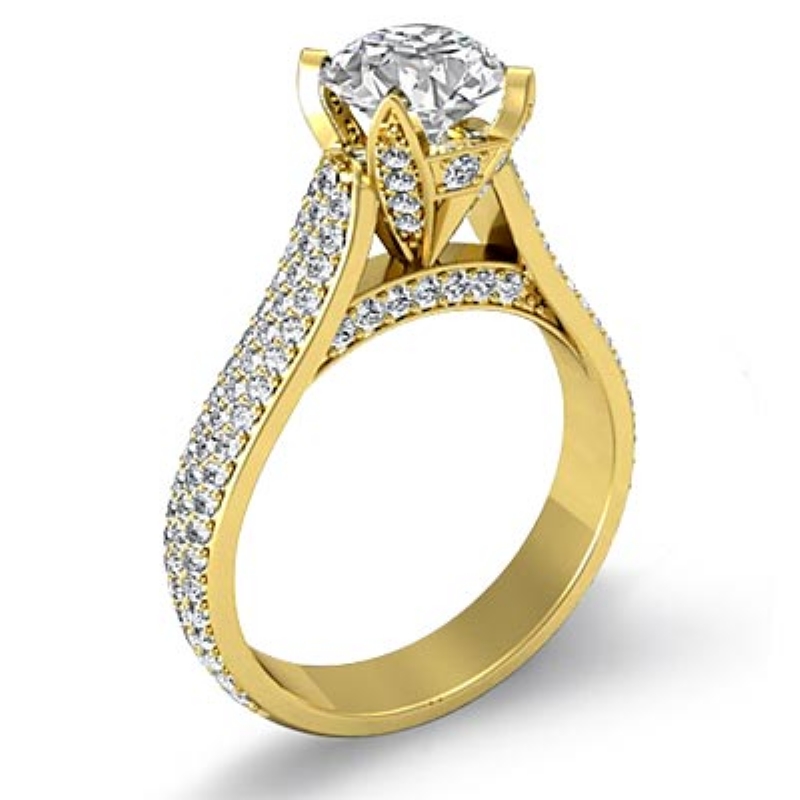 style Engagement Ring, center is Round shape Diamond Report by GIA, F Color & VS1 clarity, Made in 14k Yellow Gold (1.95 ct. tw.)