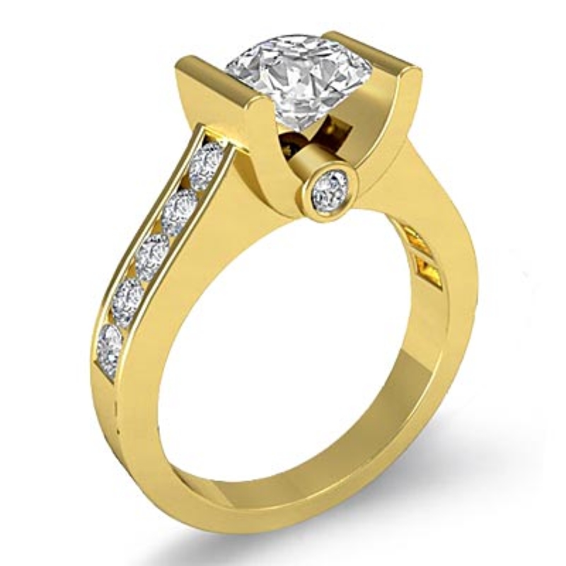 Channel Bezel Accents Set style Engagement Ring, center is Round shape Diamond Report by IGI, H Color & VS1 clarity, Made in 18k Yellow Gold (1.9 ct. tw.)