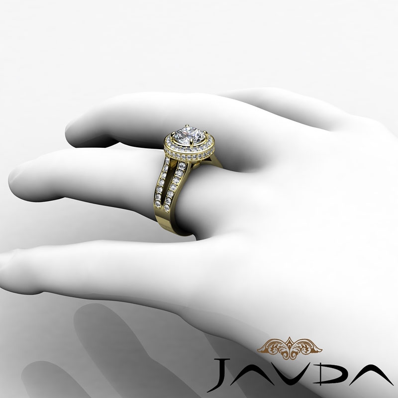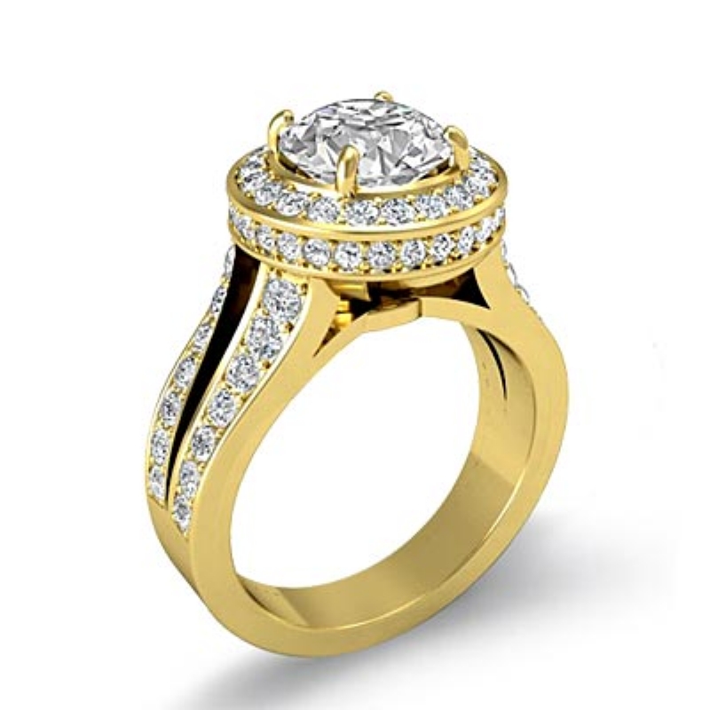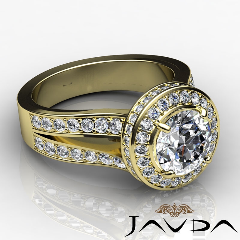 Circa Halo Split-Shank Pave style Engagement Ring, center is Round shape Diamond Report by IGI, H Color & VVS2 clarity, Made in 18k Yellow Gold (2.93 ct. tw.)