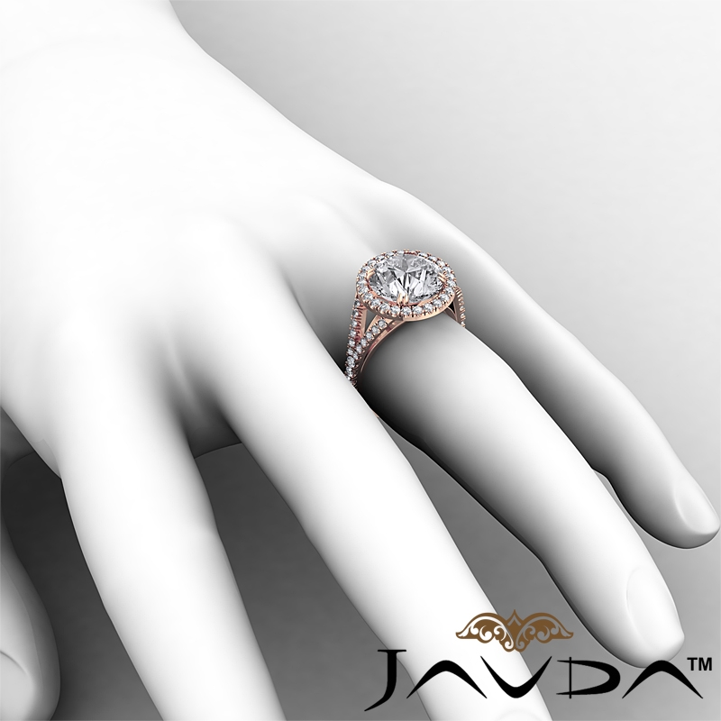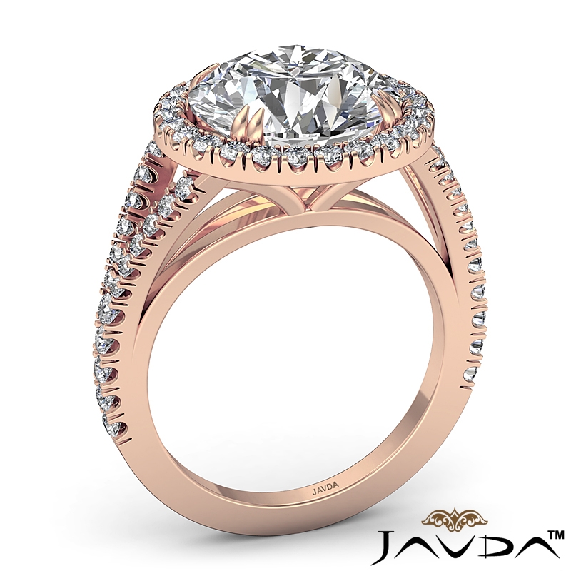 U Split Prong Halo Double Claw style Engagement Ring, center is Round shape Diamond Report by IGI, D Color & VS1 clarity, Made in 14k Rose Gold (3.74 ct. tw.)