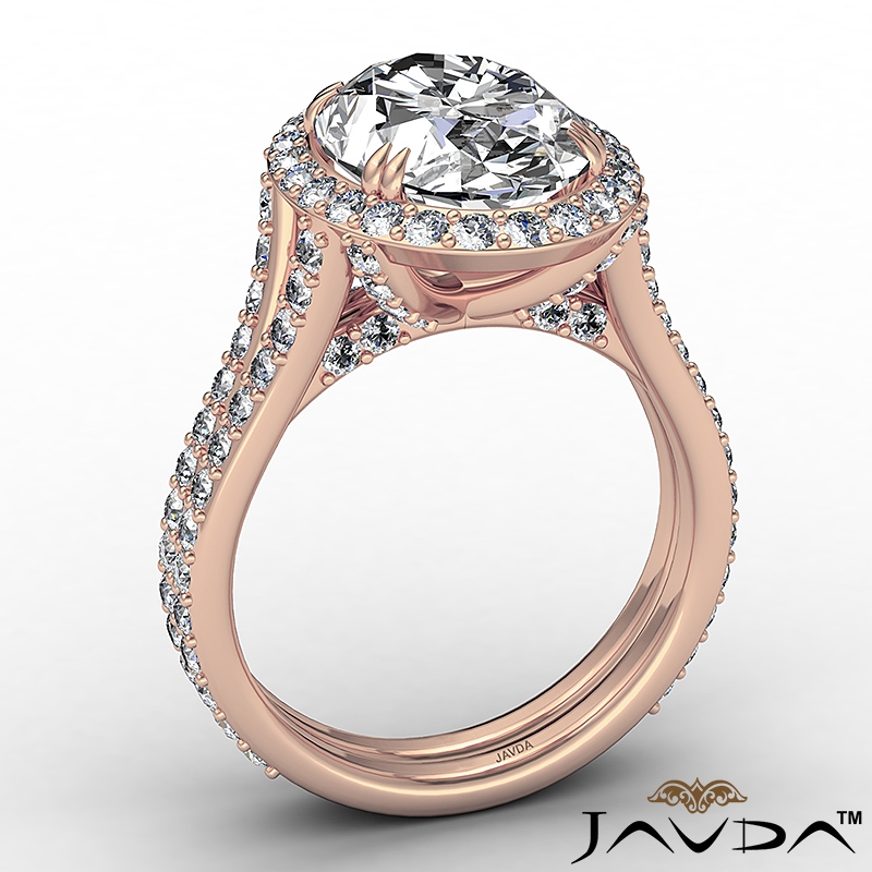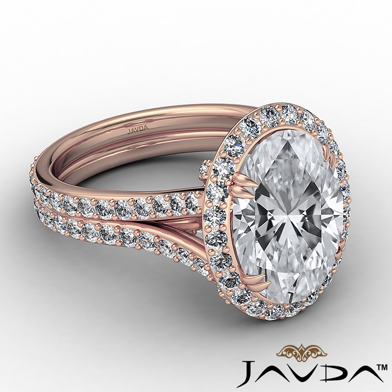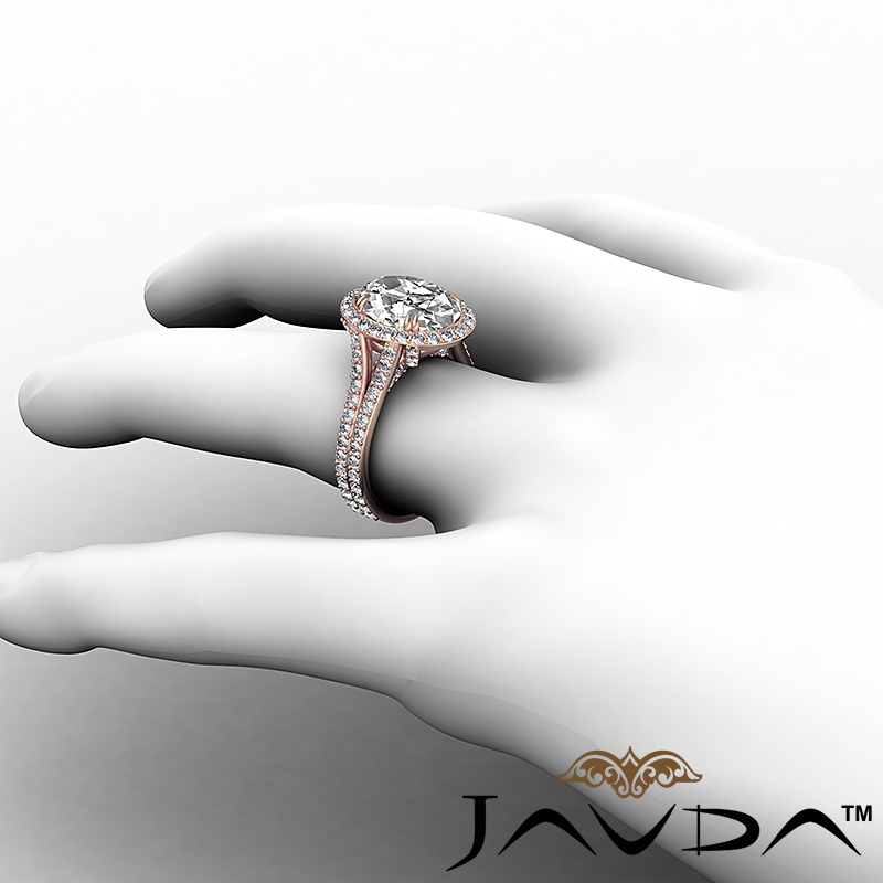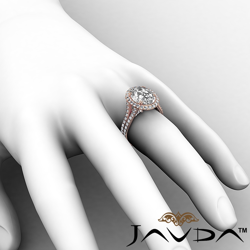 1.05Ct Halo Oval Semi Mount Diamond Engagement Ring Split Shank 14k Rose Gold.