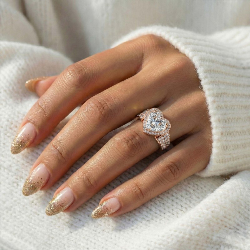 style Engagement Ring, center is Heart shape Diamond Report by IGI, D Color & VS1 clarity, Made in 18k Rose Gold (4.57 ct. tw.)